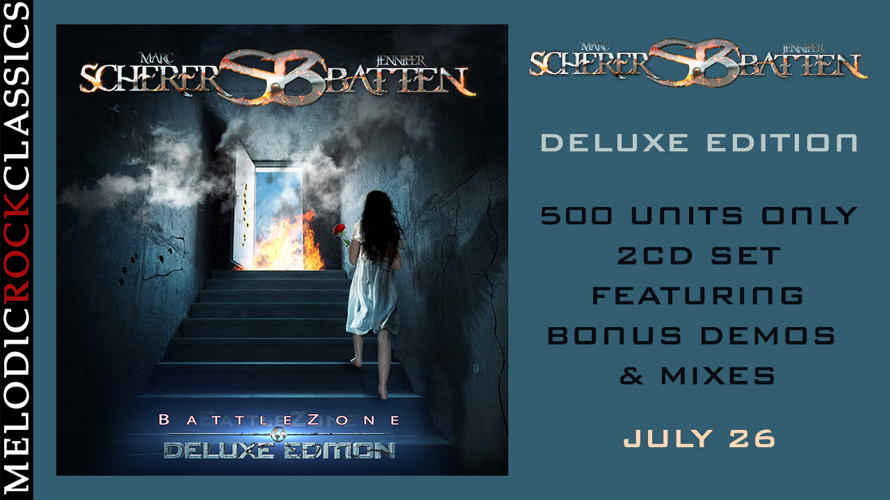 ![]() Scherer/Batten – 'Battlezone' was one of the most acclaimed releases signed to MRR. The 2017 release featured vocalist MARC SCHERER (Scherer/Peterik) and star guitarist JENNIFER BATTEN (Jeff Beck, Michael Jackson) alongside Jim Peterik and band. For this 2024 re-issue, MRC is offering the Battlezone Deluxe Edition, which gathers the original album plus a selection of rough mixes and demo versions, plus 2 additional unreleased writing demos, 'Change Everything' (from MRCD9) and the bonus track 'Blue Letter', which previously appeared on the MRR100 compilation release. Thanks to Danette Pahl, Marc Scherer and Jim Peterik for the assistance in getting this reissue going. It will be limited to just 500 units only. Track Listing: CD1: 01. Crazy Love 04:22 02. Rough Diamond 04:05 03. What Do You Really Think 04:14 04. The Sound Of Your Voice 05:14 05. Battle Zone 04:30 06. It Cuts Deep 05:59 07. The Harder I Try 04:58 08. Dreaming With My Eyes Wide Open 04:06 09. Space and Time 04:43 10. Tender Fire 05:30 11. All Roads 04:47 CD2: 01. Sound of Your Voice (Rough Mix) 02. Dreaming With My Eyes Wide Open (Demo) 03. Rough Diamond (Rough Mix) 04. What Do You Really Think (Demo) 05. Space And Time (Rough Mix) 06. Harder I Try (Rough Mix) 07. Tender Fire (Rough Mix) 08. Change of Heart (Writing Demo) 09. In My Lifetime (Writing Demo) 10. Change Everything (Writing Demo)(From MRCD9) 11. Blue Letter ('The Blue Letter Breakdown')(From MRR100) 'BattleZone' features material exclusively from the Jim Peterik (ex-Survivor, Pride Of Lions, The Ides of March) songbook. Featuring 8 rare musical gems from Jim's songwriting vault, the album also features 3 brand new tracks, written for this project. That's 11 new classic songs, produced by Jim Peterik and featuring the impressive lineup of: All Lead Vocals: Marc Scherer All Lead Guitars: Jennifer Batten Backing Vocals: Marc Scherer, Bill Champlin, Bryan Cole, Brian Hemstock, Danette Pahl Alternate Lead and Rhythm Guitars: Jennifer Batten, Mike Aquino, Dave Carl, Jim Peterik Bass Guitars: Bill Syniar, Klem Hayes Keyboards: Jim Peterik, Christian Cullen, Chris Neville, Barb Unger Drums: Dave Kelly, Ed Breckenfeld Sax: Mindi Abair Additional credits include: Executive Producer: Danette Pahl Engineered by: Larry Millas Mastered by: Larry Millas at World Stage Studios and JK Northrup at Alien Productions Mixed by: Jim Peterik and Larry Millas Keyboard Programming: Larry Millas and Christian Cullen Art Direction and Cover Art: Nello Dell'Omo Jim Peterik comments: “As a long-time enthusiast of Marc Scherer's vocal chops and the expertise of rock guitar goddess Jennifer Batten, you can imagine how excited I am at the release of Scherer/ Batten 'BattleZone' album. As a song writer and producer, it was a dream come true mining some lost gems from my many years in rock, producing them to a new lustre and even writing three brand new cuts with Marc and Jennifer - Cuts Deep, The Harder I Try and the title track BattleZone. Andrew McNeice and Danette Pahl of Melodic Rock Records gave me the artistic leeway and financial support to create the album of a lifetime. Working with one of the best engineers in the business, Larry Millas, and musicians like multiple Grammy Award Winner Bill Champlin of Chicago, bassist Bill Syniar (formerly of Survivor), Mike Aquino (guitarist and singer from World Stage), and two-time Grammy Nominated saxophonist, Mindi Abair, along with Dave Kelly and Bryan Cole, brought depth and texture to the tracks that is palpable. You can hear our excitement in every song. I guess you can see I'm pumped. I dare you to crank up BattleZone or Tender Fire or Crazy Love and not rediscover why you fell in love with melodic rock in the first place. I double dare ya!!” Jennifer Batten: “It was such a pleasure to jump into such a high-level inspiring project! Marc's vocals are out of this world, the grooves are kickin', and working with Jim Peterik is so joyous and creative. I can't wait to take this to the stage!” And finally, the vocalist fronting this extraordinary project, Marc Scherer: “Even something as innocuous as lunch with Jim Peterik can inspire great things… It was during one such meeting that Jim and I conceived of an album showcasing his lost musical treasures. Thanks to the contributions of long-time Peterik enthusiast and personal friend Danette Pahl, we now have lift-off! While the brain trust of talent surrounding Jim enhances any idea, this album is extra special because it features a collaboration with one of the world's greatest guitarists, Jennifer Batten – who played three world tours with Michael Jackson and two with Jeff Beck. They say you know when it's right in the first 30 seconds, but in this case, you can sense the magic in the first few notes. BattleZone blends the songwriting craftsmanship and storytelling genius of Jim Peterik with the artistry of some of the most amazing musicians in the business. As Jennifer observed, the battle can be internal: the fight to be better, to raise the bar and challenge yourself while stirring the musical cauldron. I truly believe that we have captured lightning in a bottle and I'm so eager for everyone to share in this experience.” Scherer/Batten 'BattleZone Deluxe Edition' will be released via MelodicRock Classics on CD & Digital July 26. |