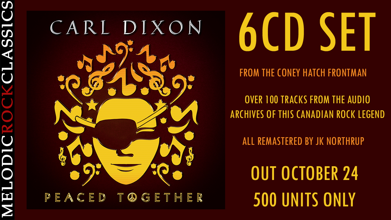 CARL DIXON - Peaced Together (6CD Deluxe Box Set + Digital Download) $99 (including worldwide shipping) LIMITED TO 500 UNITS WORLDWIDE ![]() CARL DIXON - PEACED TOGETHER![]() MelodicRock Classics is extremely excited and maybe just a little relieved to be announcing the long-awaited CARL DIXON archives box set 'Peaced Together'. Well over 3 years in the making, the 6CD box set will arrive in fans hands by October 24. The advance release date is to allow time for off-shore manufacturing and shipping. The last 6CD set MRC released had some issues with jewel cases, so we have explored all options worldwide to find the best case possible for these important releases. You can pre-order NOW, with the full digital delivery due next month. 'Peaced Together' is a 6CD box set in a 'fat-pack' jewel case, limited to strictly 500 units worldwide and priced at $99 (including worldwide shipping). Since 2022, Carl Dixon and MRC CEO Andrew McNeice have been swapping files, sourcing audio, digitising tapes, reels and DATs and then starting over again with new improved files and now, we have both finally reached agreement that everything is as good as could possibly be. JK Northrup has been involved all along the way, adding his thoughts and overseeing the remastering of every track. Carl Dixon states: “PEACED TOGETHER is in part the realization for me of every artist's dream; that people care about your work and want to share it with the world. It is, I hope, part of its charm that this project is based largely on music that has never gone through the stages of refinement, polishing and presentation to the world in big-bucks album releases. This collection consists of my unreleased musical works save one or two exceptions. It spans many years and veers across different styles and genres, some more fashionable now than others, but I'm pleased that I can hear elements of my true self throughout. Some of these works were rerecorded for inclusion in album projects but most remained known only to me and to those who helped make them. I am delighted to now have these many “hidden gems” released out into the wide world by Andrew McNeice and MelodicRock Classics. I hope they bring a measure of joy to all who choose to spend time listening. Rock on wit' ya bad selves!” ~ CD. 2025 Carl Dixon is of course the world renowed Canadian guitarist, singer and songwriter, who has been fronting CONEY HATCH since 1981 as well as releasing 6 solo albums and writing with a whole host of artists along the way. The 6CD set will be broken up into the following categories: Disc 1 – Anthems Volume 1 Disc 2 – Anthems Volume 2 Disc 3 – More Rock & Some Roll Disc 4 – The Softer Side Disc 5 – A Little Centre of Left Disc 6 – Tracks That Can't Be Left Behind These songs come from a variety of sources and eras, but it's best left to Carl to expand on his earlier comment: “The one hundred-plus tracks on 'Peaced Together' are evidence of a life spent in song writing whenever and however it could be done. From my earliest studio demos with my high school chums, to the most recent DAW creations from my home studio, it's all expressing something that I thought needed to be said. We all write, sing and play our personalities through our art. Here lies AOR Rock in various stages of development, sure, but there's so much more in addition. Some of the AOR stalwarts who appear on Peaced Together as co-writers and performers include Stan Meissner, Marc Ribler, Van Stephenson, Brett Walker, Taylor Rhodes, Kevin Savigar, Marc Ferrari, Steve Shelski, Jack Conrad and Steve Plunkett and that's just Disc 1! Harry Hess turns up in two songs we recorded during the run-up to the debut Harem Scarem album; that's his unmistakable voice you hear on Too Much Paradise. Songwriters are generally an affable, collaborative bunch and I learned much from all of my partners over the years. Special mention must go to Van Stephenson who was very kind and instructive in his gentle way when I was a greenhorn turning up in Nashville for the first time. Four of these songs are my collaborations with him. Uniquely, eight tracks included here are collaborations with my father Ron Dixon, based on his poems and writings. Something of him endures through the music. A VERY wide range of styles and approaches is heard on 'Peaced Together'. Nashville, New York, L.A., San Francisco, Pittsburgh, Toronto and smaller communities; I travelled far and wide to meet great people and make these songs. There's lots of rock as you might expect with my history but also pop, blues, country and funk. Sometimes they were just for fun, sometimes it was like trying on a stylish hat to see if it looked good on me. I'm proud of all of these tracks, else I would not have put them out on display like this. It's crazy to me that we haven't emptied the cupboards to make this collection.” 'Peaced Together' is a 6CD box set in a 'fat-pack' jewel case, limited to strictly 500 units worldwide and priced at $99 (including worldwide shipping). All pre-orders will receive the complete audio package well in advance of the physical delivery and is the only way to guarantee a copy of this amazing set of songs in a one-off pressing. It's hoped most regular MRC retailers will carry copies of the set, but pre-order here to be guaranteed and get the full advance audio delivered soon. The full track listing is as follows: DISC 1 01. Buried Alive 3:18 02. Walk Through The Fire (Demo) 3:50 03. Cloud Of Love 5:16 04. Good Time To Be Bad 3:35 05. Don't You See 3:20 06. I Believe In Angels 3:59 07. Love Strikes (Demo) 4.00 08. Edge Of A Heartbreak 3:41 09. Hold Your Fire 3:06 10. Kid Blue 3:21 11. Leap Of Faith 4:20 12. Love's Gonna Take Some Time 3:18 13. Hot Streak Gone Cold (Demo) 3:35 14. She's A Touch Like You 4:05 15. If Love Could See Me Now 3:44 16. Until The Dawn 4:13 17. Hard To Leave 4:03 18. All I Want 3:56 19. Fight For Your Love (vocal Jimmy Lawrence) 3:50 DISC 2 01. Fuel For The Fire 3